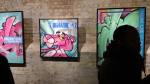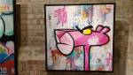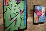 SEEN X RISK – MISERY LOVES COMPANY at Stolen Space, Whitechapel, East London – This show is probably the best thing I’ve seen in here in ages” she said with a great big excited smile of her face, art does excite and yes, she was right, there’s something very satisfying about these Seen pieces hanging on the walls of Stolen Space. The New York legend (and for once I guess that is the right term to use) is sharing the gallery walls with fellow American “street art legend” Risk. Both artists satisfy, the show satisfies, that back room really does satisfy – those Seen pieces in the back room that really do hit the spot in just the right way straightway though, that instant rush that only a painting can give you, that feeling that makes you want to punch the air and yell a “yes”. Those layers behind the Pink Panther’s head, those bright pop art colours, that sense of time that is very much right now.