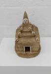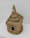 We went on to say that “apparently it is important that we know the artist is from somewhere called Kyzyl (in the Tuva Republic) and not from the big city of Moscow. that he carves wood, boils bones, hides in the woods (he’s rather like those Liars) there’s all kinds of symbolic significance, fantastical narratives, oddities, you’re not quite sure if he’s playing with you or not, bits of shamanic playfulness (was it playfulness?), is he paying with us? Apparently Kyzyl is located exactly in the geographical centre of Asia. While every other gallery and artist in the vast Frieze pavilion is intent of being deadly serious, to view Antufiev’s very tactile work – objects made of metal, wood, ceramics, textiles, bone and who know what else – to view his work you need to walk through the mouth of a giant cardboard monster he’s constructed to separate himself from the rest of the fair. He’s back at Emalin, here in East London, there’s a solo show in November, and he’s off to the Mostyn in North Wales as well, wonder what they’ll make of his monsters there?”