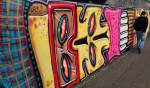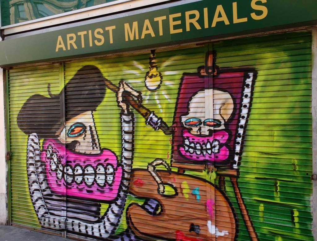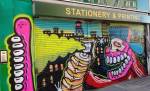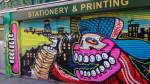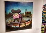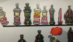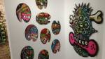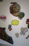 “This collaboration between Sweet Toof and Rolfcarlwerner features some larger and unique cut-out skulls, collectible painted palettes, spray cans, B boys and unique objects”, not sure how to feel about Sweet Toof in this form in this gallery, those teeth really bite in amongst all the noise and the dirt of East London’s walls or spied from the train out of London Fields towards Liverpool Street, or indeed on the shutters of that art supply shop just down the road that you won’t be able to see an Saturday but you will on Sunday when the shop doesn’t open.  Sweet Toof and Rolfcarlwerner’s Cut And Run collaboration, the last but one show in the basement space for a couple of months (Intent is the very last show opening next Thursday) before the gallery takes a break for a birth or two, ends at 5pm on Sunday January 14th *Intent opens in the same space on Thursday 18th Jan) . Here’s some shots and a flavour or two, grab it for real while you still can … .