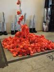 14 – 17: ANDREW HORNETT – The Black Square. – The Black Square is 111cm2… Materials used in images: clear plastic bottles, old boots, orange plastic bag offcuts. “The Black Square is a space that I have cordoned off within my studio primarily for experimentation with materials collected through everyday living… The contents of the Black Square change, evolve regularly… My Intent with this project is to find a way of enabling the viewer to witness more of the processes involved in creating works of art, either accidental or anticipated… I am interested in the performance aspect of this way of exhibiting where the artist is often present, observing, tweaking or completely rebuilding the artworks on display…”Website: www.facebook.com/andrewhornettart