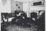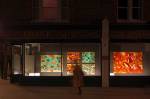 97; EMMA HARVEY – A shot of two of the untitled series of circles (oil of board, 55cm) at an installation at an Edwardian dress making show in Hackney called Wall & Jones.