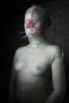 Statement: “Jasmin Reif`s work explores the transformation of human identities, generated in and by modern society. She creates grotesque masks made of soft yarn and wearable sculptures of re-cycled materials she either collects or comes across. Methods she uses are photography, knitting, sewing, embroidering and drawing. Jasmin`s current sculptural work interrogates the prevalence of “beau ideals” via a series of wool masks and re-cycled-leather garments influenced by “body horror” movies and Francis Bacon`s paintings of the figure. All pieces are created by hand and photographed as an exploration of human mutation and distorted identity and depicting a nightmarish interpretation of modern culture” – www.judascompanion.com