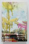 116 – 119: SHARON DREW – Artist statement “It is primarily the sensation of light, space and movement in landscape I wish to create rather than a sense of place and colour, process and the physicality of paint are central elements. I aim to find the point where I am on the edge of control … as paint leaves the brush in drips and trails a brush-mark may hold or dissolve, colours separate or blend. I want to let it behave in ways that surprise me”. This work was produced during a UEL residency at Trinity Buoy Wharf on the River Thames, also shown at WVWG East London, the first shot is from one of the shows.. Website – /www.sharondrew.com