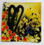 41: EMMA HARVEY – Untitled [9] 2017 – Acrylic & stickers on wood, 55cm (detail)