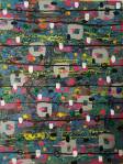 115: VERITY NEWMAN – one of the Formal Elements’ Series: 2016-17 – A series made in many layers, applied over and over again, then washed back and reapplied. Emphasis on pattern, colour and composition – a kind of ‘organised chaos’. Acrylic on canvas, various sizes.
