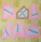 62 – 65: KATARINA BALUNOVA – “The main themes in my work are city, urbanism and architecture, conflict between nature and civilization, searching for a home. I am often inspired by the city and the urban environment, which I see not only as a defined physical space, but also as a psychological projection. The city is a man-made object that goes beyond the individuals’ experience of a building, street, or district. I try to find a new perception to invisible layers of nowadays cities. It is possible to read various stories inside; I try not to represent reality, but to give the city structure a symbolic form that bears different meanings in its simplicity. The buildings are not just objects, but artefacts with meaning, or signs dispersed across some larger social text. The architecture has the capacity to articulate in a very specific way the contradictions and ambiguities that modern life confronts us with. In my artworks I use it in a symbolic way to express our existential situation. The structure of cities of nowadays is subject to a strict geometry and it is in perennial expansion. We can see the constant changes in the urban form, pattern and structure. The geometric pattern is a typical feature presents in industrial society. Geometry is a key element to understand social and industrial development in the modern landscape. The use of geometric shapes and structures is becoming the testimony of the industrial society marked by an existential crisis. We can also see the internal and external conflicts between nature and civilization, the fragile balance of survival. Quickly expanding cities absorb the surrounding countryside, creating a new environment not only for people but also for plants and animals that try to adapt. It is a continuous search for home, the place to live. House is a typical feature in my works as a symbol of dwelling. The feeling of being protected and of seeking a protective casing is fundamental in human being, so dwelling becomes on one hand a shelter giving peace, while on the other hand it is something that can stop movement, a kind of sentimental cage. So the house can represent a city-house, a family house and a cage-house”.- www.katarinabalunova.com