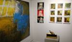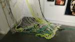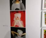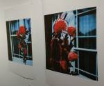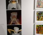 Vesna Parchet has a bit of punk rock energy about her, her collaged pieces made from her print making. her use of old doors and bits of packing case, more colour in her work this time, she always impresses. Sofia Martins uses a camera in a very painterly way, her self-portraits and her slightly burnt Polaroid pieces, I kind of need to see them bigger (but then I’m not paying the printing bill), I like her mystery, he obtuseness, her art is a strange to read as the she is when she fronts her rather left-field art-rock band (Starsha lee), Yi Zhang has a number of rather intriguing prints, a taste of her recent series of self portraits that capture some of her performance, we’ve seen her installations at other shows, we’ve here tell of performance plans, we’ve admired the red rope bondage and the tying up of Adam, with the red flowers and the bags,…