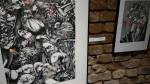 Mia Jane Harris is a regular in terms of Cultivate shows, her work is always dark in a gothic sense, her playing with death, her taxidermy, her porcelain charm, her two pieces standing on a shelf almost being looked at by those eyes in the largest of those Sally Jones paintings. As for the big white canvas in the middle of the room, well we couldn’t resist placing that big white Anna Choutova canvas in the middle of it all, the moment she submitted it we had to have it, we f**king love art…