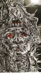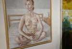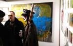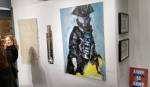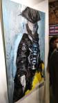 Peter D’Alessandri is a painter I always struggle with in terms of our group shows, he’s figured in a number of our shows now and he’s clearly a very very fine painter, an old school painter, a proper painter, but I do always struggle in terms of placing his clearly very accomplished work within the body of the group show, this piece is one of his most powerful paintings and a very powerful piece in terms of this show, a piece defiantly commissioned by the subject of the painting, an impressive painting, does it work in here on the wall next to the street art flavours, the abstract marks, as powerful as it is, I’m really not sure? But then isn’t that contradiction what these group shows are about? Why should a more traditional old-school painter be on the wall next to the pop art and spray can marks and the highwaymen?
