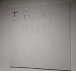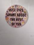 Kut is a new name in terms of a Cultivate show, we spied her on-line a couple of days before she coincidentally responded to the open call we put out for the show. Having an open call and bringing in new artists and fresh energy is always an important part of the Cultivate shows, the aim this time was to include the work of at least five artists we’d never heard of before, we ended up with six from the hundreds of submissions – really like Kut’s painterly style, the energy and expression that’s there in her paint. the words scratched, the attitude in there with execution, a foil for the latest additions to Emma Harvey’s ongoing series of circles, Emma’s Riot Grrl flavoured Bikini Kill references and her positive hints of anger in there with that painterly style and hers, her clever contradictions when she could so easily make the more obvious moves, looking forward to the day we see all those circles in one place.