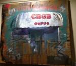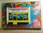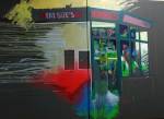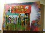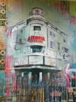 Rather like those Dan Witz mosh pit paintings over at Stolen Space last month, you can’t just photograph these things however well you may photograph them, there’s a weight of importance that comes with a painting of something like a venue or indeed a chip shop or a department store or a joke shop, a reverence that comes with a painting of that place you ate at during your lunch hour or that café you always went to when when you went to the seaside, a painting of that place where you first saw that band you grew to love so much, that time at the Lyceum, that first time so and so came over to play. A painting of one of those places where important things happened, where big life-changing things happened, important friendships formed, partners were met, these places where small things happened, that place where they were always happy to see you when you bought your chips on a Friday night or went to for a full English to clear your head on a Saturday morning before the match – Fat Sue’s place or the Victory Café or whatever the equivalent in your town was. By painting these places in such a meaningful way the artist has captured them for us all, he’s marked the importance of these places, he’s celebrated them, he’s said to us all, “yes, they were as important as you thought they were”, he’s memorialised them, he’s documented their special place and time in history. Danny Pockets has captured a place, a time, a way that’s now almost gone. Gloriously on-the-nail paintings of venues and shops, of “our” cafés and pubs, of places now torn down and replaced with soulless glass-fronted shopping centres full of “stuff”,paintings of places once alive with music and people now surrendered to the corporate chains and their fake off-the-shelf gastro pub nightmares.