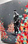 Oh yes, there’s some really rewarding art in here, some impressive pieces, of course not all of it excites, not of it stands up, when did you last go to a group show where everything was right? On the whole this is a very good show, this is worth catching if you can (be quick it is a short sharp pop up), a show clearly worth returning to without all the crowds and the noise and the people standing in the way of the work in that way that people do on an opening night. This is a damn good show, there’s some strong impressive work in there, as a group show it all works rather well, as a collective statement the show works well, some of it might be over-slick and some of the names might be playing a little too safe, some of the artists might need to challenge themselves a little more and indeed challenge their audience a little bit more, and yes that could be said of the whole urban art/street art/whatever-you-call-it scene right now, but this is a good show and while one or two things tonight might not have impressed that much, there’s some real stand-out pieces and this is a fine declaration of intent from curator Carl Cashman and the Semi-Skimmed Team Do try and catch it while you can, it really is a short sharp pop up. Now how much is this empty Inkie beer can we’ve got here going to go for on ebay? (sw)