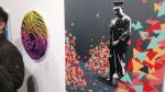 A Semi Skimmed pop up, what kind of label are we going to stick on this one then? Pop art? Street art? Urban art? It doesn’t really matter what we call it does it? A room full of art, mostly painting, a room full of colour. lots of colour, (and lots of people) almost always colourful at Jealous (almost always bust at an opening at Jealous). Jealous East is probably the perfect place for a Semi Skimmed take over and a first declaration of intent under the Semi Skimmed gallery label from artist Carl Cashman and his vision of an artist-led (currently nomadic) gallery. The intent so he says is to treat the artists a little bit better that most galleries do (really not that difficult, galleries don’t really tend to treat their artists that well, ask the artist in the studio next to us here, he just got royally shafted by a rather despicable bunch of lollipop suckers from a now on-the-run London street art gallery who’ve left a trail of rather angry out-of-pocket artists behind them), Carl’s not the first to take on the notion of an artist-led gallery as a way around the problems artists encounter with most galleries of course, we’ve been banging on about here at Cultivate for half a dozen or so years now, there really needs ot be more of it though. I suspect Mr Cashman might claim to have set his bar a little higher in terms of budget, we’re certainly not talking backstreet DIY punk rock here, this appears to be, at this first encounter at least, an operation planted firmly in the slightly slicker world of gallery-based street art or urban art (or whatever, what the hell do you call it these days?). This feels like a pop art show if it feels like anything (especially with all those specially created beers cans floating around, I bet we’ll find one or two of them on ebay this morning if we go take a look).