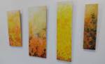 On my side of the gallery, well I said yes to the no format invite partly because this is the kind of thing I would on the whole say yes to everytime, and partly because I really needed to have look at my current body of work on a white wall in a gallery and just take the time to stand back and look at it properly. You really can’t see your own work when you’re working in a small studio with all the clutter and the mess and the broken bits of this and that. and so so much of the painting process is about the looking and the thinking, about the stepping back and quietly considering. I do spend as much time in my studio looking and thinking about where the next mark is going as I spend actually painting that next mark. My pieces in the Unframed? show were all painted on found recycled material, on bits of wood rescued from building site skips, painted in frames found thrown out on the street. The recycling is an important part of what I do, I am making some kind of statement about waste and abuse of the planet as well as abuse of the space we co-exist in, about the the way we treat things, the way we treat each other, but that does all tend to overshadow the paintings themselves at times and I’ve really been enjoying playing with light and paint and painting layers of light, I see the stars as leaves, I see it as layers of growth in the light (I find myself wanting to stop all the artdrops and the notions of daily paintings, I’ve concluded a smaller painting on every single day for well over five hundred days now, I’ve left more than a couple of thousand art drops out there over the last four or five years, a couple of thousand smaller paintings left hanging on walls around the city for people to just take should they wish to. I just want to paint the light now, I want to paint layers of growth, the other things are becoming distractions that I really could do without. I kind of got distracted again on Friday with another series of 43 paintings when I should have been working on just one new one (and would you believe it, having just said about art drops being distractions, someone from this year’s Deptford X came along to the opening and invited me to join in this year’s X with the on-going #365ArtDrop18 piece, I love a distraction, one with the art drops)