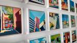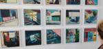 – there is an ice cream feel, there is an uplifting air – the enjoyment of light, of shape, of line, of simplicity, optimistic angles indeed. Thirty-eight oil paintings from the 2018 London heatwave, it hasn’t rained for months, this is the positive side of the city in the summer, the light, the lines, this is why you should never pass an art show. London in the summer of 2018, some of it feels like the optimism of 50’s America, if ice cream vans and open parks, of endless summer holidays and everything being right with the world – there’s one particular painting in the middle, just a simple painting of light catching a flight of stairs that’s just glorious – and even the litter falling out of the park bin looks refreshing, sometimes it doesn’t need to be revolutionary, sometimes the simple optimistic pleasure of set of paintings is more than enough, glad we went in… (sw)