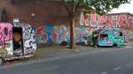 There’s not much art left in the Wick and on the island now ten, not much street art, there’s still a lot of graff, some really good graff, clearly the writers are still coming in on the weekends, I doubt if any of the writers are based in the Wick now, some fine writing though, I guess it will still be there until the builders boards have finally gone and the last of the caravans are cleared away, There very little sign of people like Sweet Toof or the paste-ups of Aida Wilde now, the old Lord Napier pub looks extremely sad these days, back in the summer of 2016 Aida and her team of print-maker paste-up artists turned it into one of the most exciting pieces of art in London. The walls of the old pub have always has been interesting, for years the walls were ever evolving, ever exciting, they look rather sad now, no one has touched them in a meaningful way since Aida’s crew last did in 2016.