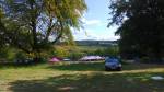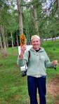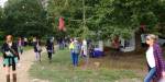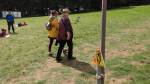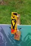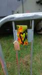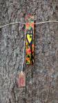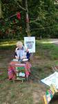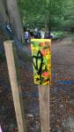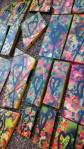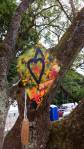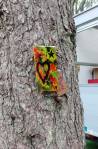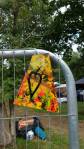 And so the first train out of London with a two bags of art, one full of drops the other full of paintings and pieces to be sold on the Art Car Boot Fair stall. Looks like we’ve got the best of the weekend weather, the site has dried out after the Friday downpours, the sun is shining, let the places of “drops” commence. 43 pieces of art painted on pieces of wood picked up off the Hackney Street, picked out of builder’s skips, material that has just been dumped on the street, pieces cleaned up, recycled, saved from landfill, painted on and then set free in the East Sussex forest, pieces left hanging around the festival grounds for people to just take should they wish to. The paper tags that are tied to the art invite people to “please take”, the instructions on the other side invite people to join in by using the hashtag, finders are invited to post photos of themselves with their found pieces on their social media feeds and such, incited to let us know whee the pieces have gone to. Now and again we see someone taking a piece and ask if we can take a photo of them with their piece, now and again someone would come the Art Car Boot Fair tent and tell us they had found one, I expect we’ll hear about more of the pieces over the next few weeks, while other pieces will never be heard of again. The people, the places and the stories of the paintings are a big part of the piece, pieces left in the past both as part of this year’s year-long piece and as parts of previous pieces have turned up all over the globe with all kinds of tales attached (there was a previous 365 pieced year-long piece in 2015 as well as several standalone 43 pieces during 2016 and 2017, the art drops have happened as part of the Fringe at the Folkestone Triennial, as part of the Leytonstone Arts Trail, the drops are always about the finders and the interaction, the places thy go to, the tales that are told. ..