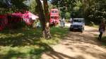 Yesterday was about the art of dropping things, dropping art, although the pieces of art are never actually “dropped”, always very carefully placed. Yesterday was about 43 more part of the ongoing year-long #365ArtDrop18 piece, a piece of work in 365 parts, a piece of work that stated back on January 1st when the first of the year’s paintings was left hanging on the Hackney Road here in East London. Since then pieces have been painted on found recycled material and left hanging for people to take all over London and sometimes beyond. It has to be found material, no going to art shop or the wood yard (unless their skips are being raided), I go out and refuse to come back until I’ve found something to paint on (or maybe a frame that can be used). It isn’t about a piece a day , this is about 365 pieces over the year and sometimes, like yesterday, whole batches of paintings will be left in one place or in one area on the same day, yesterday was by far the largest “drop” in one day. 43 pieces were hung on trees, left hanging on fences, on posts, on an old London bus, on a classic American truck, 43 pieces of art left for people to just take at the 2018 Byline Festival. A four day festival in the grounds at Pippingford Park, Ashdown Forest, not far from Uckfield, East Sussex. The invitation had been extended to come and leave some art as well as to take part in a smaller version of the Art Car Boot Fair. , The Art Car Boot fair happens in London, once a year, this year it will happen on September 16th in Kings Cross, as well as the main annual London event the Art Car Boot Fair hits the road in various scaled down forms and yesterday it was a Saturday at the Byline Festival. The invitation couldn’t really be resisted, a forest in East Sussex, a festival featuring Pussy Riot, Zounds, Department S and okay so The Members are delightfully over the hill now, well passed their sell-by date but who could resist a chance to be shouting along to “living in a bedsit, travelling on a tube train” in the middle of a fest?