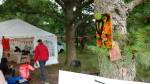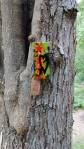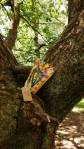 And so 43 painting were left hanging yesterday, left hanging at the Byline Festival our in the East Sussex forest, it was a glorious day, te sun was out (the sun is god as someone one said), here are the photos. The year-long piece will go on next week in London, another 43 will be hung around South London as part of Deptford X in September, before that, painting will be left here and there as I go about whatever I;m doing that day, art never stops, why would it? (SW)