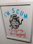Change isn’t a crime, this sin;t nostalgia, no one ate anyone’s hamster, Islam certainly didn’t, celebrate our neighbours, don’t be burning bridges and closing doors. The joy of imperfection, the joy of each other’s imperfections, the joy of an act of rebellion, defences down, learn to trust, trust in art, the art of trust, new ideas. I like Idles, I like that they’re about people, about community, about trusting each other, that a band can be comfortable putting on an art show and chatting about Tiger Bay or bubble gum cards, just chatting with singer Joe Talbot and his dad – Joe sung about his old man being a sculptor on the first album, and here he is, he really is a sculptor, sculptor Nigel Talbot, that’s his piece in the corner, the big sculpture, really like that big sculpture (and the tales Nigel tells of the band and the pride he clearly has in his son) . Actually that’s the one big downer on the show, besides Nigel 9and a chance bumping into him over a can of beer and finding out who he was in passing), we can’t put names of artists to the art, no information or labels or lists, we don’t know who’s created what, really want to know who did what so we can go find out more about them and their art. Beside the lack of artists details this is so so right (and I’m sure they’ll put names to pieces later, they’ve probably done it by now, it was the private view we were at, they said the names would be there for the proper opening, they were very apologetic about it, so easy to forget these things when you’re putting an art show together and the stress of hanging it all, we’ve all done it).