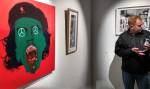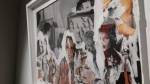 If this was just another art show you’d probably be thinking okay, you’d probably engage with a couple of the pieces for a moment and then politely say thank you to the person sitting at the table looking after things and politely walk out again. But this isn’t just another art show (is any art show never just another art show?), and when you know that this is art made by a collection of artists interpreting the…. what am I trying to say here? If you’d just come across it and took it to be just another art show you’d maybe think it to be little more than just okay, kind of interesting, maybe not that exciting, interesting enough though, you’d maybe take note of one or two of the stand out pieces and want to know more about a couple of the artists, you’d admire the sculpture in the corner, wonder about the bubble gum cards of wrestlers and did the artist collect them as a kid, bought by his or her dad and lovingly kept in a shoebox under the bed? You’d smile at the collage as you search for a way to read what it might be trying to say, that big wedding party photo with “Joy” imposed over it that looks like a typical Irish wedding in somewhere like Birmingham or Bristol or Cardiff back in the 70’s, if you’re of an age you’ll smile and remember times like that when you were a small kid and uncle Eamon said he;d give you 50p and a badge if you promised to support Aston Villa instead. You’d maybe smile about families and glasses of stout and too much hairspray, you’d maybe connect that maybe a lot of this show is about families and people. You’d think okay and you’d politely leave like you do so many times with so many art shows in so many back streets of East London.. But you see, you need the whole package and you need to have soaked up those words over and over and over again and caught new ones as you listened again and got to know the songs a bit more, scoffed at the selfie wot Francis Bacon done, did you see it? Didn’t look nuffin like ‘im, You see, you really need to need to know who and what Idles are, and how Blighty wants his country back, you need to know what’s actually going on here in this “gallery” that once was a car repair shop, and then when you know a little bit of the background to this art show, then you’d know that this is a a little more than just another art show in just another back street, that this is actually a brilliant art show, that this is a show that connects in so many ways, in so so many of the right ways.
