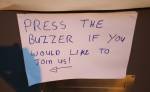 We’re off to a good start on this first Thursday of the so called new season, and it looks like there just might be something going on at the criminally underused Project Space gallery down by the canal just off Broadway and just beyond the Lurkers graffiti? Ain’t Got a Clue what that Lurkers graffiti is doing there? No idea why the rather beautiful Project Space gallery is so underused? There looks to be something on tonight, the bright lights are on, we can see lots of slogans on pieces of paper through the windows, no one much in there besides a rather lonely looking artist or curator sitting at a table, the hastily made sign on the closed front door is instructing us to ring the buzzer, it doesn’t really feel that welcoming, kind of feels like it throws the pressure onto the visitor, really not that inviting, why not just have the door open? Not like the evening is cold or anything, sometimes art galleries can be their own worst enemies, that buzzer and that sign just aren’t that inviting, rather intimidating actually, we’ll resist the invitation and head off to the next gallery. Off to Columbia Road, there’s a couple of why promise to be interesting openings on Columbia Road tonight…