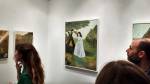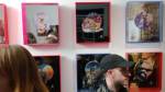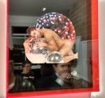 “We are so excited to announce a new exhibition with the one and only Anne Lacheiner-Kuhn this September” say Nelly Duff. “As we wave a solemn (but satisfied) goodbye to Summer, we couldn’t think of a better and quite frankly more NSFW (not safe for work) way to usher in the new season” – see, told you some people claim this to be a new season. The place is packed, the small rooms rammed, arms and legs everywhere, people are dressed for the occasion, there’s colour everywhere, colour on the walls, people colourfuly attired, extremely colourful frames – indeed those frames are almost as impressive as the pieces within them, maybe even more so? Was the art made with the frames in mind or did the art come first and then the rather playfully inspired framing later? All very stylish, style over substance maybe? No, that’s far too harsh, Anne Lacheiner-Kuhn’s work is impressive and these frame really do bring it out in the best of (colourful) ways. We’re back in a complete different century now, a complete different century to the one we were in with those beautiful Grace Morgan Pardo paintings we were viewing just a few minutes ago in the previous gallery. Another packed art space and a third impressive show of a rather busy evening. Nelly Duff is alive tonight, tempting to just hang around and explore the “collection of never before seen original works and exclusive printed editions” for the rest of the evening. Nelly Duff tell us that this is “Lacheiner-Kuhn’s work at it’s very best, exploring and illuminating contemporary gender theory and queer identity within an urban art space. To ensure the show reaches it’s full potential as a tongue-in-cheek presentation of Lacheiner-Kuhn’s own exploration of love, sex and pop culture, it is presented by her altar-ego/drag counterpart Annapropriate (who, we have on good authority, will be present at the Private View). Expect the unexpected, but what we can promise will be bespoke Perspex framed original collage works, live music, great drinks and even a disco ball if you’re lucky” – yes it is tempting to just hang around and enjoy the atmosphere and the art in here, these Anne Lacheiner-Kuhn pieces are rather striking, but there’s more art to see, there’s the promise of that Florence Hutchings show to come yet….