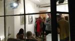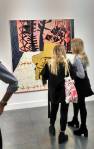 The clearly rather ambitious Delphian Gallery team have taken over The print Space on Kingsland Road for a Florence Hutchings tonight, a show that almost immediately on first view though the big windows, lives up to the on-line promise, this looks exiting. Another busy art space, is this the most alive the East London art scene has been for ages? There’s a bit of horsepoop to wade though in terms of actually getting in before the art can be explored properly but it does look exciting, There some bullshit involving the list and someone on the door insisting I sign in to my Facebook account and jump through a hoop or two to get a ticket to get in, “what if I’m not on Facebook?” I ask, “well at least sign up to our mailing list on line, here’s my tablet, if you do it now you can come in” comes the answer, “I don’t want to be on a mailing list, I just want to see the show” I politely reply, “those are the rules” comes the reply, followed by “are you even interested in art?” as she looks me up and down, “do you even know who the artist is?” she asks, “well not personally, but I rather want to see her work” I answer, “do you know anyone in here?”, I think she’s implying I’m only here to scrounge a free beer, I get the impression I don’t look like one of the cool art crowd? What a load of crap, if the art hadn’t looked so good I’d have just walked away, it takes a bit of name-dropping in answer to her questioning to get past the “I don’t make the rules” door woman and the security man who then follows me in to make sure I am actually here for the art and not the free lukewarm larger. Enough of that. those Florence Hutchings paintings look rather wonderful, her big paintings of tables and chairs that I must admit probably doesn’t sound that exciting when you just read it here? Chairs? Who wants painting of chairs and such? But these paintings are bold, these paintings are exciting, her paint is alive, these are striking pieces, pieces alive with abstract colour, paintings alive with shape, with line, with so so (so) much. Once again it proves a little difficult to actually see the work, so many people in here just standing in the way of the art while they chat away and suck down their free cans of beer. A show to return to when the security guy isn’t following me around then, and more importantly a show to return to when people aren’t annoyingly standing blocking the work in that very annoying way people do at openings like this. These Florence Hutchings paintings are really exciting pieces, bold pieces, wonderful paintings, wonderful. “You didn’t even have a beer” say Mr Security man as I leave, “no, I was here for the art” and with that we’re off again, now and again art needs to cut the crap and be a little more friendly. Love those Florence Hutchings paintings…