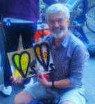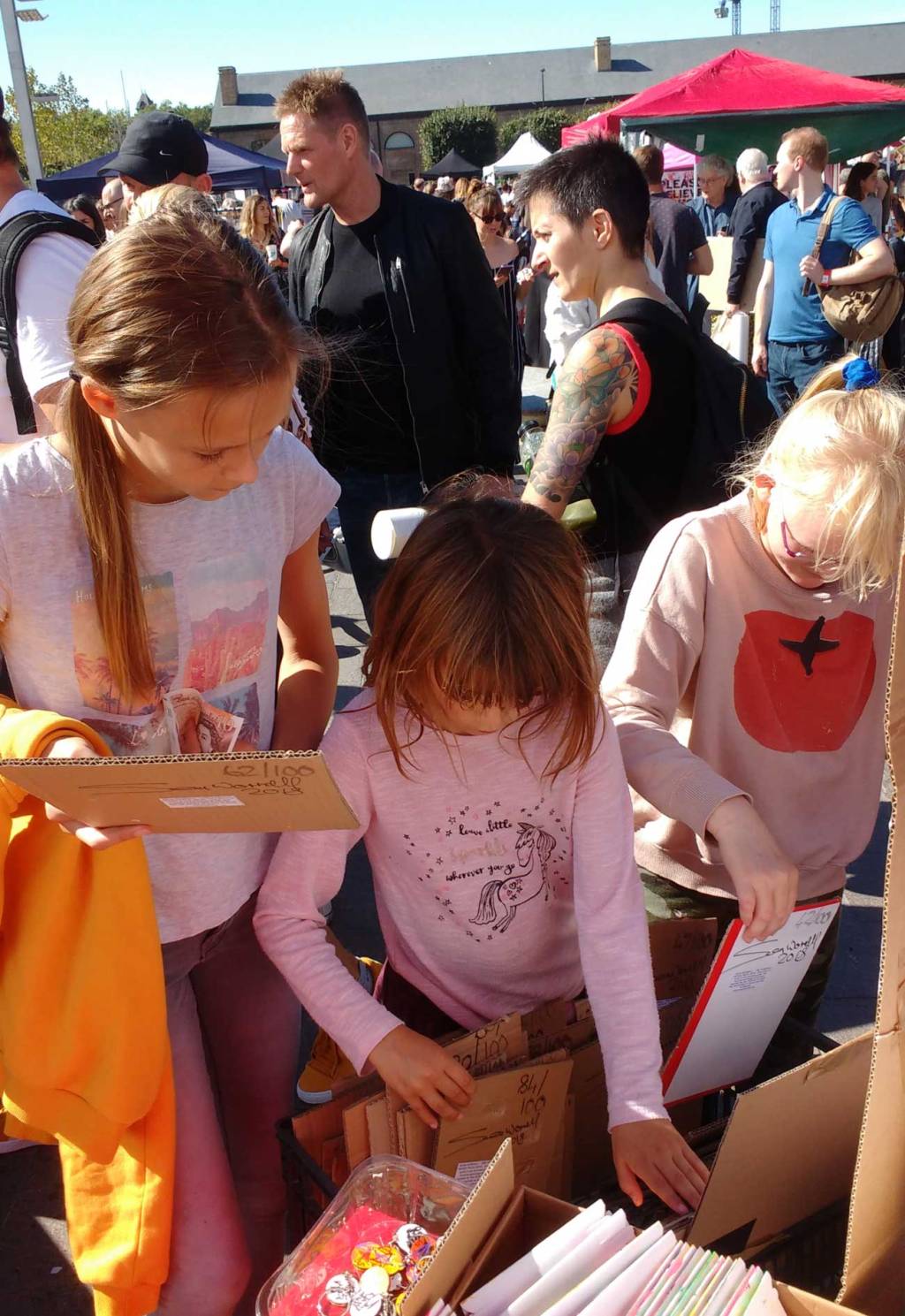 The “Why Cheap Art Manifesto?” isn’t my piece of art but I did have it pasted up as on the stall as part of my presentation at the Fair, I had a great day selling original paintings and pieces of art for the price of a good loaf of bread, art really should be for all and not just for those who can afford to pay the often ridiculous gallery prices. I loved selling the hundred parts of this year’s Hundred Pieced Piece, one piece of art in one hundred parts, each piece, each painting, sold for just one pound – love the photos of the people with their pieces. Three says ob then, I’m not going to attempt to review the whole thing or try to workout what Gavin Turk was doing on his bike or what Pure Evil was printing or what the Binnie Sisters had made this year – there was art everywhere, art for everyone, so many pieces of good-looking art, and good to see lots of new artists making their Art Car Boot Fair debuts in the September sunshine. What a great day, DJs played, people painted, people performed, people people-watched, dogs dog-watched, people played pianos, people danced, ate food, smiles at each other, oh look, it happened three days ago, old news now I know, but we surely can’t just let something as good as that just go by without documenting it in some kind of way can we? The 2018 London Art Car Boot Fair was another rousing success, a day when art got most things right, I like it when art gets it mostly right, who cares if it was as good as it was last time or if this was the best one, things evolve, London’s evolving, art is evolving, it was a great day, taken us three days to recover, hopefully see you next year if we get invited again that is, what great day, art excites… (sw)