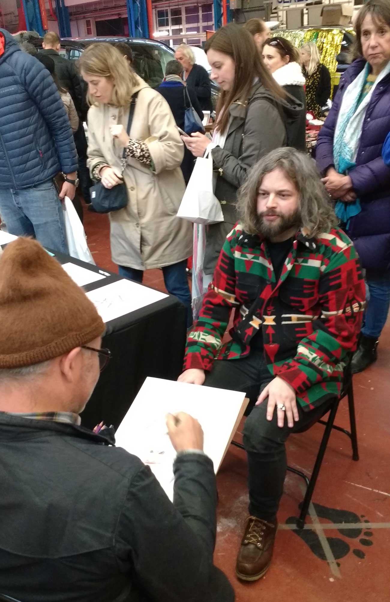 Art Car Boot Fair Christmas Wrap Party, London, December 2018 – Artist at work