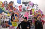 The art year in off and running then, off with a touch of beautifully chaotic style with some art, some fashion, some club culture, some people watching at the rather packed opening last Thursday night at New Art Projects – Fred Mann’s place over by the canal and Broadway Market – the art year off to a good start over in Hackney with a rather exciting show called Punish The Streets – “an exhibition that celebrates a decade of vFd in Dalston and highlights the amazing influences that flow between club culture, art and fashion” – you see it really was as much about the people, the people watching, the clothing, the colour of the crowd, as it was about the art on the walls – it was about the conversations, the atmosphere, the event – yes it was very much in an art gallery and (mostly) white walls and there wasn’t any loud banging music and no it wasn’t about turning te sapce into a club, this is very much an art exhibition, but there was lots people and clothes or rails and boots and hair and noise and people and flyers and torn posters and photos from the nights and friends who hadn’t seen friends for ages, it felt like a really good way to use an art gallery, it felt like a really good art show