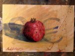 31: SEAN WORRALL – “The Hackney Pomegranate (No.6)”, February 2019 – An ongoing series of quick studies. Acrylic on a found wooden board, gloss varnish, 15x20cm