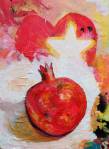 26: SEAN WORRALL – “The Hackney Pomegranate (No.3)” February 2019. Acrylic on found wooden board, 20cm x 15cm.