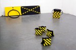 67/68/69: KATARINA BALUNOVA – F*ck Tape Composition, 2018 – installation, material: canvases, tape, wheel, tyres