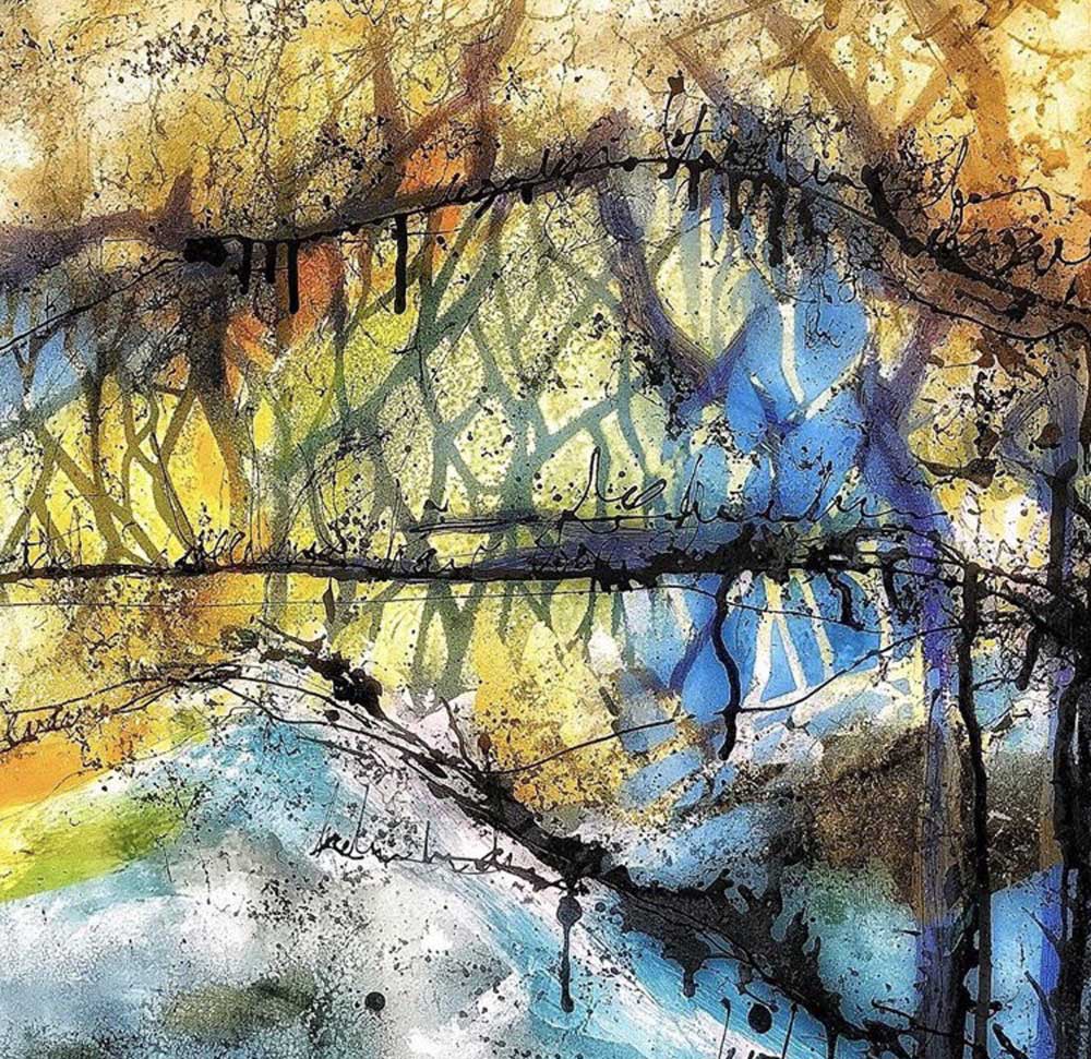 105: ANNABELLE LOSA – ‘Veils’-spray paint, acrylic paint, ink and resin on canvas. 150x100cm