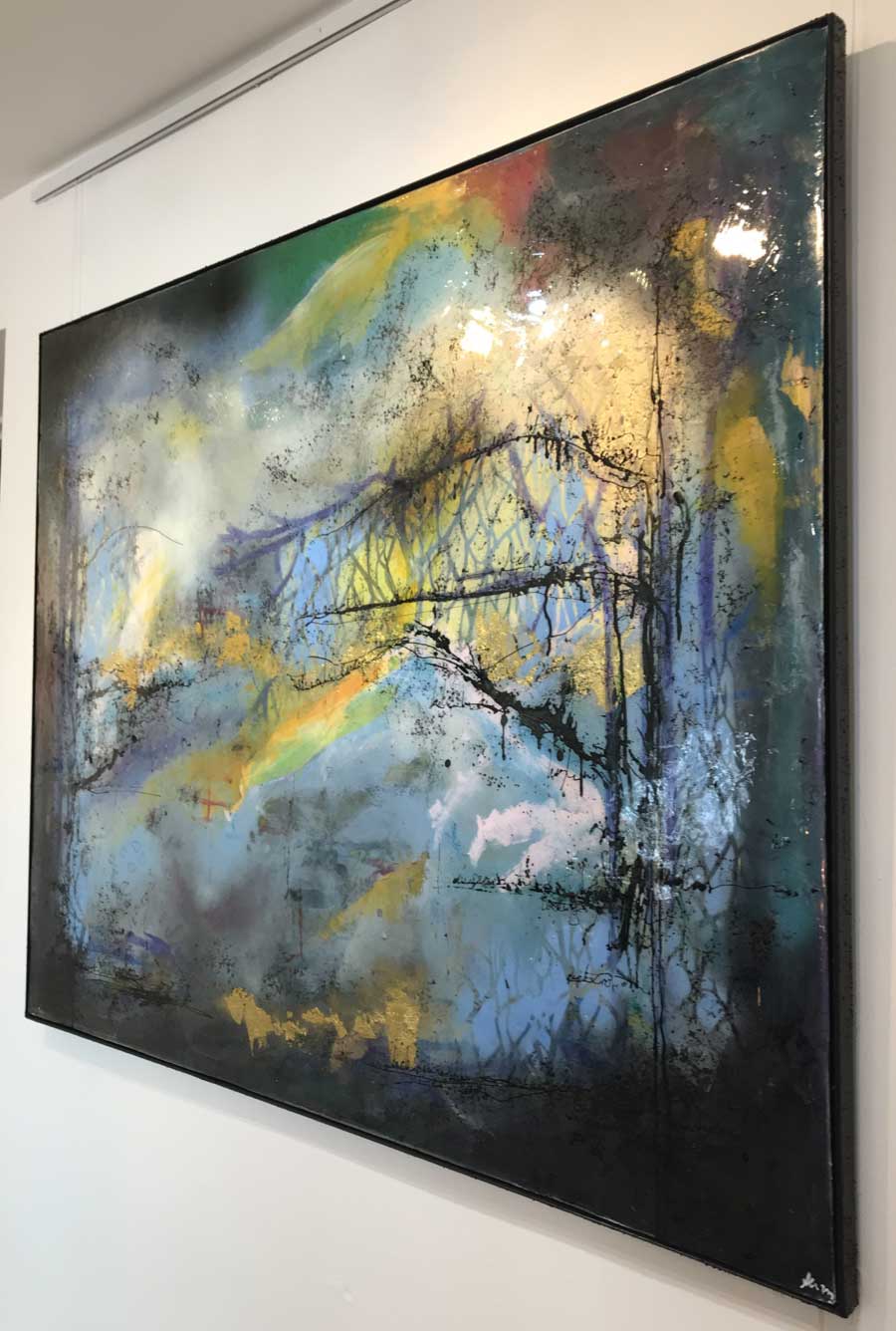 105: ANNABELLE LOSA – ‘Veils’-spray paint, acrylic paint, ink and resin on canvas. 150x100cm
