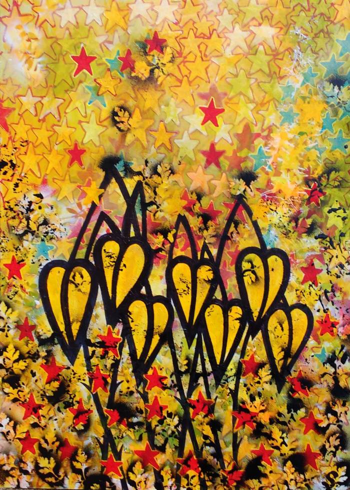 138: SEAN WORRALL – “The Luck of a Thousand Stars” – Acrylic, brushwork, spray paint, marker pen, gloss varnish – 55cm x 75cm, (March 2018)