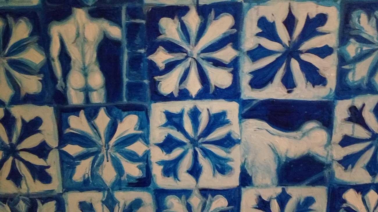 57: JAMES BELL – Grindr Azulejo (2018) – Acrylic on Canvas – Installation shots from Attract (part one)
