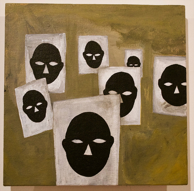 64: JOSEPH SAKOILSKY – Owlmen – acrylic on canvas board 20x20cm