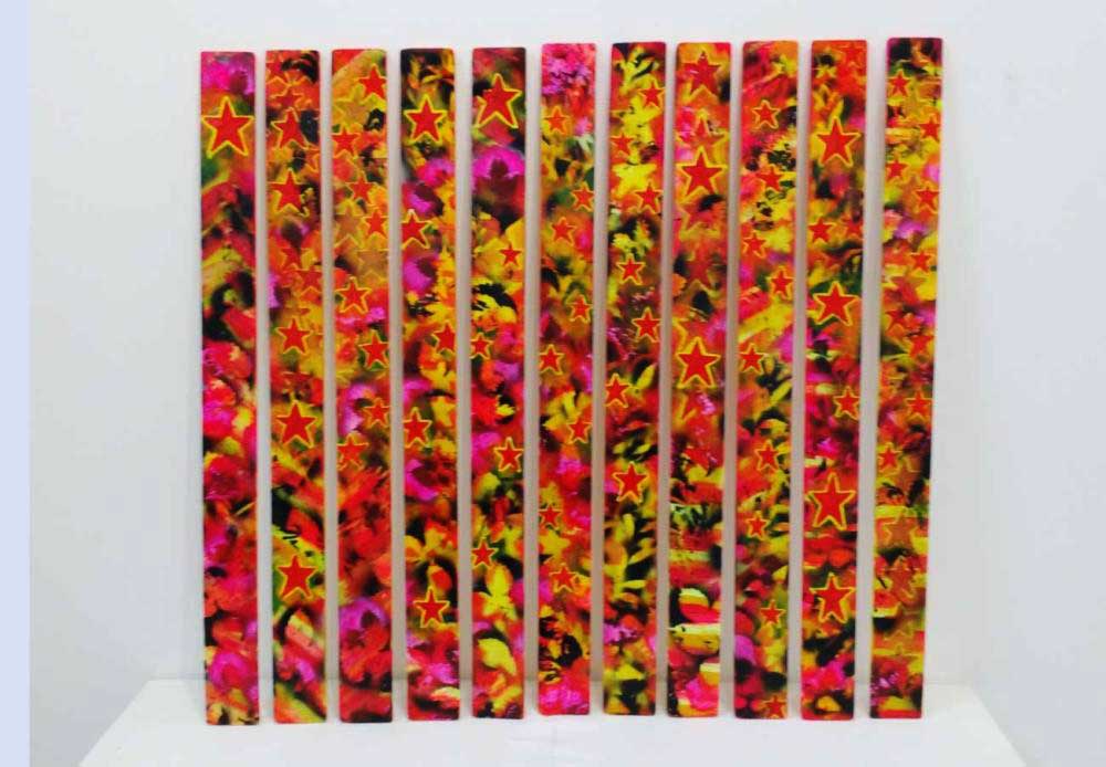 91: SEAN WORRALL – “Eleven” installation at Unframed, acrylic on found wood (2018)