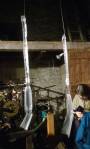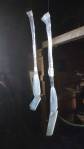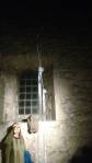 The opening night of the show in the tower was busy, three artists, Adam Zoltowski, Rocco Turino and Pete Burke, the light was low, the evening was a dark one, the people and the lack of light made the steps of the tower even more difficult to negotiate, but you see, that was the thing, we were all marvelling at the tower, the names scratched into the wall, “1776”, early Hackney graff! And what where those images of a building carved into the wood and those names and look at the view and the workings of the clock and you really did have to pay close close attention to every foot placed on those tight twisty steps as others tried to climb up or down. Amazing place, amazing building, magical and well where’s the art? True there was a big foot in the gloom (how did they get that up there?) and a rather intriguing piece hanging from the ceiling but so much of it was lost in the noise of the information boards telling us about the tower, that or piece just propped against the wall and lost in the low light or the distraction of, well the distraction of everything else. As an event it was excellent, as an art show, maybe not so much, the words talked the talk, the show statement and such, but the walk all kind of got lost in the walking up those steps and everything else which is a damn shame, I suspect there might have been something good lurking? The artists didn’t quite engage with the building or those visiting the building, they kind of let the place take all the attention, it was rather good climbing those steps and negotiating through small doorways and out on to the roof though…
