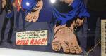 . “Polari is a form of cant slang used in Britain by some actors, circus and fairground showmen, professional wrestlers, merchant navy sailors, criminals, prostitutes, and the gay subculture. There is some debate about its origins, but it can be traced back to at least the 19th century and possibly the 16th century”/ Villain’s superhero take on polari is brilliant actually, his prints are beautiful fun, his palette just right as his his humour, there’s a bold charm to it all, a serious point to but those comic book covers are amusing, “have you seen what it says there in the bottom corner”, and if you don’t know over there in California or wherever you happen to be reading this then insulting someone back in the 79’s or 80’s (or maybe even now?) by calling them an “Iron” came from the slang, iron hoof, poof, and there he is on the wall , Iron Hoof, what a superhero! The whole thing is brilliant, excellent art, great conversation, friendly space, and you do rather suspect those comic book covers are going to be big news sometime very soon, get in on it now while you can afford them… (sw)