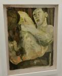 Transformations is a three artist show, a show that’s happening right now down the big bright white cube of a basement that is New Art Projects; “Gay porn and queer politics collide with Lucian Freud’s muse at New Art Projects’ latest exhibition” so shouted the headline on one website that likes to sensationalise things, all about the click-bait but then they’re not that far off with that headline. More importantly what we have in the basement are some rather glorious paintings from Dylan Meade, I guess you might see them as gay porn but really, they’re just excellent paintings, there some “colourful ceramic pieces about homo eroticism and desire” from Frederik Andersson that surely can;’t fail to make you smile. and really, not sure how “controversial” anything here actually is, not sure anything is actually trying to be? Does art really need to be “controversial to make a splash in the art world”? True, those Dylan Meade paintings could be viewed as erotic, they’re certainly beautiful, they’re deliciously honest, they’re very real and the paint itself flows so so well, there’s certainly painterly energy but are they that “controversial”? Surely they’re just great paintings really? Exciting paintings THAT work rather well as part of the not really that “controversial” three artist show next to Fredrik Andersson’s amusing ceramics and the energetic colour of painter Sue Tilley….