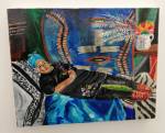 Now Sue Tilley is as colourful as her paintings suggest she might be, “born in 1957 in South London, she was the muse and friend of the late fashion designer and performance artist Leigh Bowery and worked as the cashier for his notorious nightclub Taboo. In 1990 while working in a benefits office as a benefits supervisor she began to model for Lucian Freud appearing in his world famous portraits Benefits Supervisor Sleeping and Benefits Supervisor Resting. She is the Author of Leigh Bowery the Life and Times of an Icon published in 1997. Since she retired from the dole office and encouraged by club impresario Wayne Shires, Tilley set up a studio and began to make oil paintings. Turning herself from model and muse to artist she has shifted her gaze from domestic items and things about her home to self portraits and portraits made in homage to artists she admires. Her drawings of mundane domestic objects became the runway star of Italian Fashion Week in 2018 when she was commissioned to collaborate with Fendi, who covered their collection with her drawings of a telephone, her cup of tea, a banana skin and a bottle opener, also featured were her bathroom taps. In 2019 Tilley collaborated with fashion designer turned sculptor Nicole Farhi and they bonded over their mutual friendship with Lucian Freud. The result was a show of sculptures by Farhi shown this year depicting Tilley. For her first solo show at New Art Projects the gallery has commissioned her to make a new series of paintings based on her memories of Leigh Bowery” – you see, that’s it, we really don’t need to tell you anything more, she’s as colourful as her very very beautifully alive paintings, I want to say “vibrant” but that word is way way too abused, these are vibrant piece though, iconic (there goes another one, iconic and vibrant are two words that should never blight a review in 2019), paintings as beautifully loud as paintings of people like Leigh Bowery really should need to be, excellent.