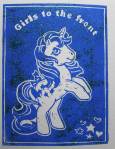 We have some new Emma Harvey prints, some fresh new handmade prints, each one slight different to the last, the perfect way to do it. Some new Emma Harvey handmade A4 lino prints, “all A4 lino prints and all have eco glitter (biodegradeable, you get it from here)”. Two new Ponies Against Patriarchy prints (blue and gold), editions of 25 each, two Gentleman Jack / Anne Lister prints are in editions of 10 each, (however, the pink Suranne Jones one doesn’t actually have any glitter on it). The prints are heading to Margate this Saturday for the Margate leg of the 2019 Art Car Boot Fair adventure, the fair opens at 1pm, it goes on all afternoon, loads more details here via the Organ page or via www.artcarboofair.com. I believe the prints will be £10 each on the day, all numbered and signed on the back and all that kind of thing…