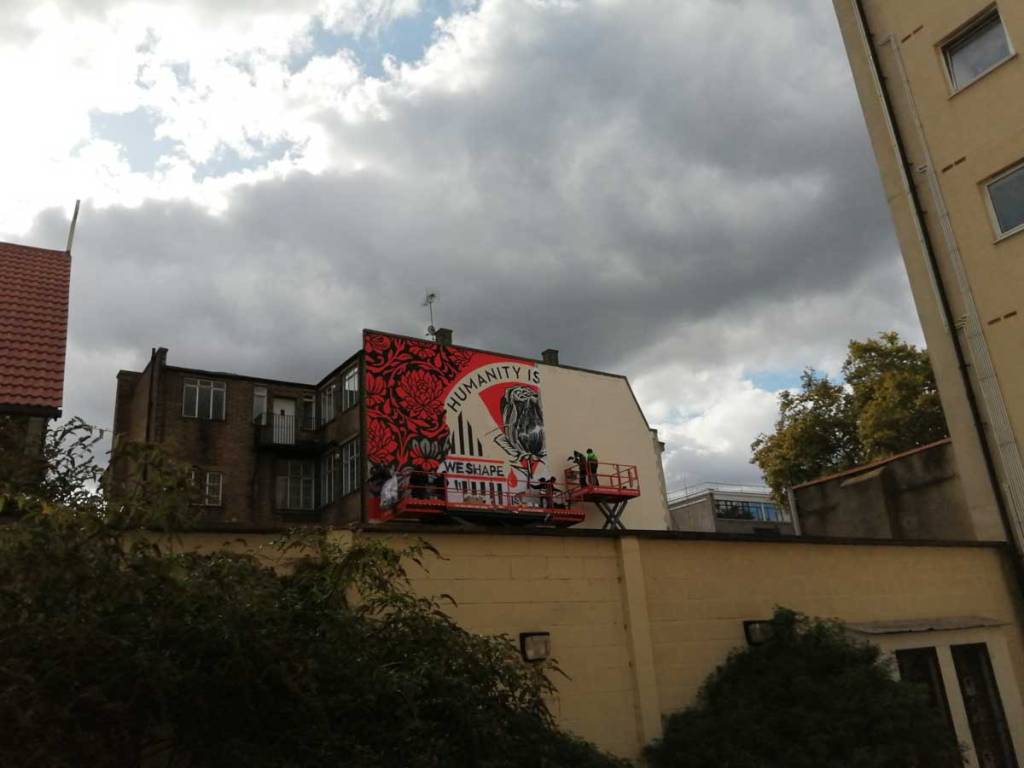 ORGAN: FRIEZE WEEK Part 3 – Looked out the studio window and there was Shepard Fairey half way up a Hackney wall…, work in progress, Wednesday afternoon, Mare Street….