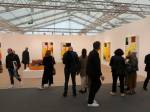 10: STERLING RUBY This list is in no particular order but is it was then Steling Ruby was the easy winner, he lifted what on the whole was a conservative and soewhat disapointing Frieze 2019 – On Thursday we’ve come in through an entrance that means we don’t get to the Gagosian space and the bright yellow rush of Sterling Ruby‘s bright bright pieces that really do rescue the whole morning until we’re a couple of hours in, we don’t get to the Gagosian space until we’re something like two hours spent looking at art and it really is the massive relief, the André Butzer piece was good but nothing had really threatened to take our breath until we turned that corner some two hours in. Turning that corner is such a rush (as well as a relief), such a buzz to walk in to the big open space alive with all those big bold golds and yellows, the big textures, the edges where colours meet, the pieces of fabric (there’s a lot of fabric in Frieze this year, more on that in a moment), a big square of a gallery space that seems to be bigger that everyone else’s you almost want to punch the air with relief, with delight, at last some excitement, some colour, some art, some life! And such a good hang, no clutter, no man in a suit (and slightly rebellious tie just to show he’s in touch with art), no slick man on a slick phone sitting at a slick table with his slick books and his well groomed hair,, no well-dressed female sitting at her laptop trying to avoid conversation with anyone she doesn’t already know, the Gagosian space feels a lot more like an actual gallery rather than that expensive car sales room feel that’s found in most of the booths that are housing most of the art “stuff” on sale in here. Sterling Ruby‘s big bold art really is a breath of much needed fresh air on what so far has been a long Thursday morning. Actually The whole dynamic of the fair is changed on the Friday as we’re funnelled in via an entry that takes us straight to the Gagosian space first before anything else – on Thursday it was all about turning that corner and having Sterling Ruby take your breath, turning that corner on Thursday was brilliant, Thirty or so refreshing minutes are spent with all those big bright yellow paintings, and they are very painterly, they’re full of golden energy, alive with texture, beautifully coloured, golden yellows, lemon yellows, whites, greens, lines that meet, edges, love those edges, so uplifting, like stopping for a reboot or something that refreshes everything, boy did we need to turn that corner and see all those big yellow paintings and feel that rush and that yes and that punch of the air, it really is a little difficult to leave the Gagosian cube and carry on exploring, shall we just leave now instead? Leave with Sterling Ruby fresh in our minds?