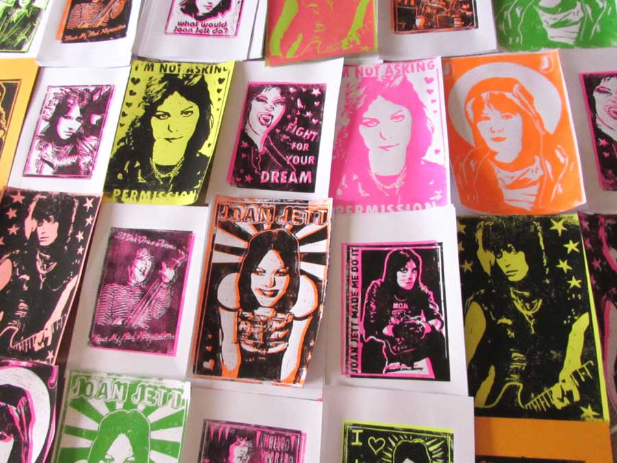 Harvey and Worrall – Chips, Starz, What Would Joan Jett Do? will open on Saturday November 2nd and close on Sunday November 3rd, 11am until 5pm on both days – This year Emma Harvey has been playing with her riot grrrl flavours a little more, following on from last year’s Seven Year Bitch referencing “I Saw it First,I Want it Worse” show in the same venue, a show that saw Emma exhibit 43 paintings of riot grrrl and female punk bands – this year she’s been playing with her pop art punk rock print making side, her Joan Jett or Chips piece at this year’s Art Car Boot Fair that leads directly to her asking just what Joan Jett might do at this show…… The rather beautifully handmade sets of limited edition prints have been evolving alongside her continued exploration of very personal, very painterly things, her evolving series of circle paintings that she says are gathering for a future solo show. I think there’s been something like twenty of the circle paintings now, they’ve been emerging at shows over the last couple of years. Meanwhile to compliment Emma’s Joan Jett punk rock flavours I may well dig into the Organ archive from the fanzine/record label days for a piece of art or two to hang next to more of the recent fruit paintings that have been emerging this year since that market trader on Ridley Road threw that lemon back in January. Actually we have almost two weeks to go yet, we don’t know what we’re going to hang for the weekend yet, we have thirteen days to go before the doors open on Saturday morning, we have plenty of time to select work, make more work and maybe invite a guest artist or two to come join us.