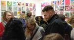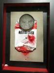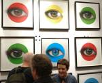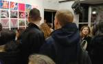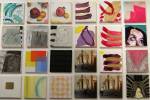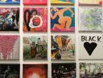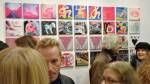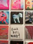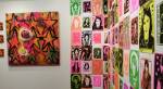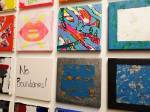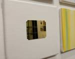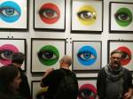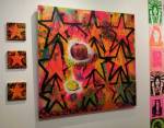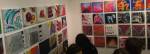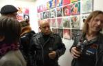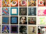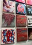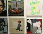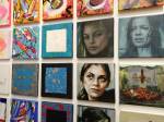 Okay,so we can’t blow our own trumpets that much (it was a damn fine opening and it is a damn fine show though, we do need to blow a little bit), Nothing is Square was (and is) a show featuring 25 invited artists and 97 pieces of identically sized art. 97 slices of art, one piece on a plinth, 96 hanging in a very regimented way on the three white gallery walls. The idea was simple, and no, we’re probably not the first to come up with the concept. The idea was the strict demand that the invited artists all work on exactly the same 20cm square canvas, it seemed like too much for some, we had ot be strict about it, if you didn;t obey the one and only rule then you simply didn’t get in. The hope was that a whole load of diverse artists, styles, thoughts, abstract paint manipulators, pop art printers, situationists, a film maker, a figurative portraitist, and whole mix of things could come together and be hung in a way that united the whole collection as one,