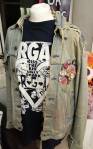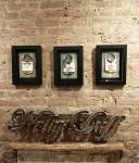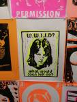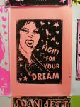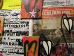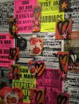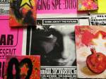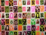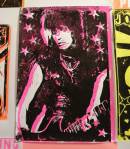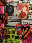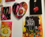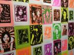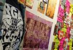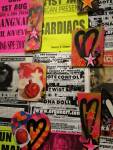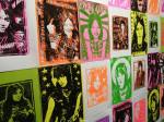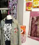 Anyway, never mind the dogs or the squares or that Stefdies swore for the very first time, we’re half way through another of our Month-long Cultivate Columbia Road take overs, the third time we’ve done it at that Shipton Street space now. This the whole takeover thing kicked off at the start of the month with a short sharp two day weekend show, a kind of installation thing, and yes, you guessed it, more damn blowing of our own damn trumpets – a show led by Emma Harvey and her on-going questions about Joan Jett, about Joan Jett or chips? About what Joan Jett might do about any of it? Another Harvey and Worrall show, a kind of follow up to that time and that show in that East London Edwardian dressmaker’s shop a couple of years ago, that and this year’s Art Car Boot Fair adventures from Emma – a two day show called Chips, Starz, What Would Joan Jett do? Just a two day show, no opening night, partly out of respect for and consideration of the Atom Gallery Can I get A Slice show that opened the evening of November 1st, no way did we want to distract from that one – a fund raising benefit event for the Hackney Foodbank feature something like fifty invited artists all painting or printing on or in pizza boxes, we didn’t want people coming to our show rather than heading over to North London for that one (and anyway we both had work in the pizza box show), and anyway, why does there always need to be an “opening”? We put up the work on the Friday, we went off for a pizza at Atom Gallery, then we opened on the Saturday morning and we closed it all on the Sunday evening – bang, rocking at least six times, a short sharp two day art show over one weekend down by the Columbia Road flower market.